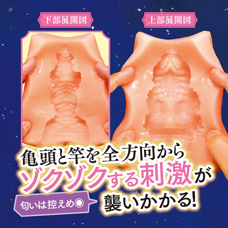 【タマプレミアム:国内自社工場製】亀頭も竿も全方向から心地よく締め付ける極上名器!肉厚なヒダと細い帯状のヒダが内部で複雑にうねり絡みつき射精へ導く!亀頭全体を締め付け奥へと誘う前半部分、ハート型の中央部は狭くキツく上下のうねりで竿全体を刺激する。精子を一滴残らず搾り取る最奥部の蜜壺。亀頭と竿を全方向からゾクゾクする刺激が襲いかかる!