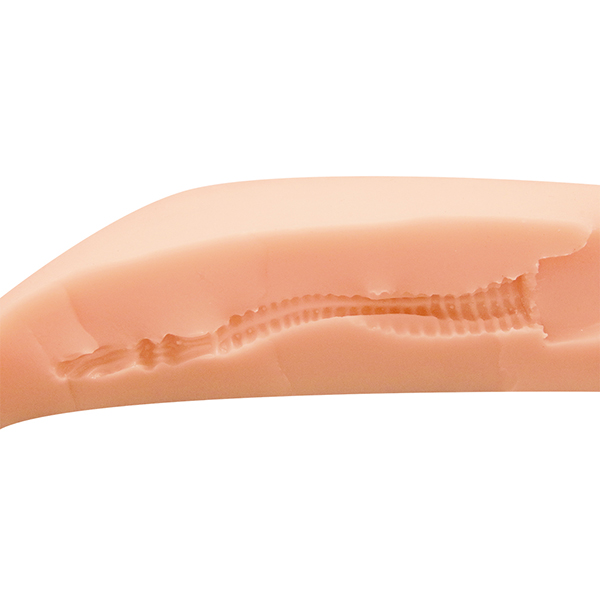 「ふわモチ密着イリュージョン」は内部構造にもこだわりが! 蜂の巣のような細かなヒダを全体に配置し、全体を通してゾリゾリ搾りとります。挿入したとき、最初に感じるのはボコっとした丘のような突起。それを超えて最深部に行くと、ポルチオのような狭い最深部が吸い付くように刺激します。内部にも工夫を施し、しっかりと気持ちイイ床オナホールとなっています。