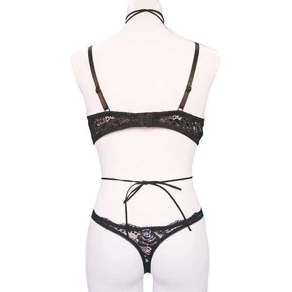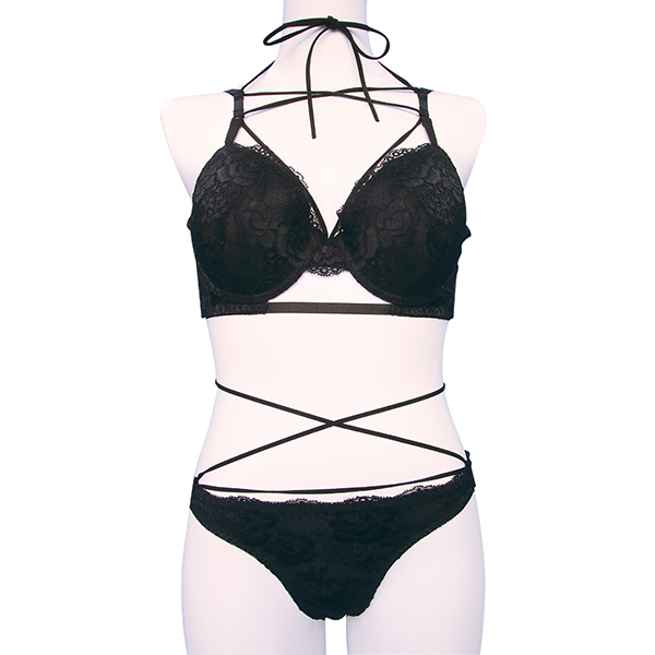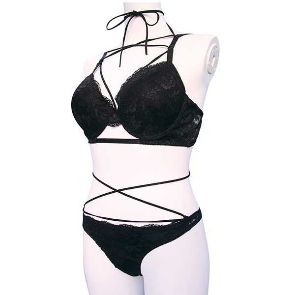 ブラジャーは伸縮する紐を好きなように結べて、おとこの娘用カップで胸元のボリュームもアップするのでセクシーなシルエットを演出できます。