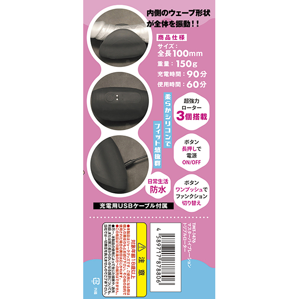 グリップ&ストロークで快感自由自在! 日常生活防水 充電用USBケーブル付属 ボタン長押しで電源ON/OFF ボタンワンプッシュでファンクション切り替え